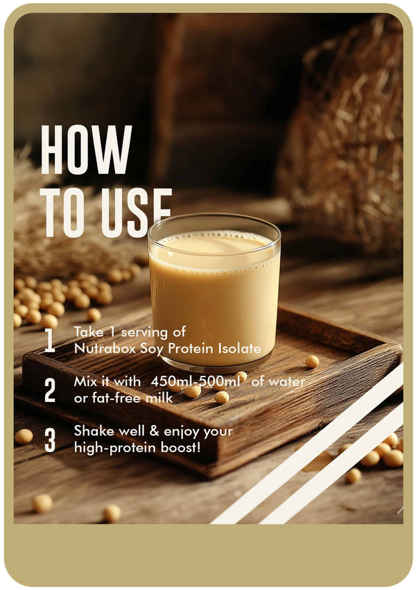 - Take 1 serving of Nutrabox Soy Protein Isolate