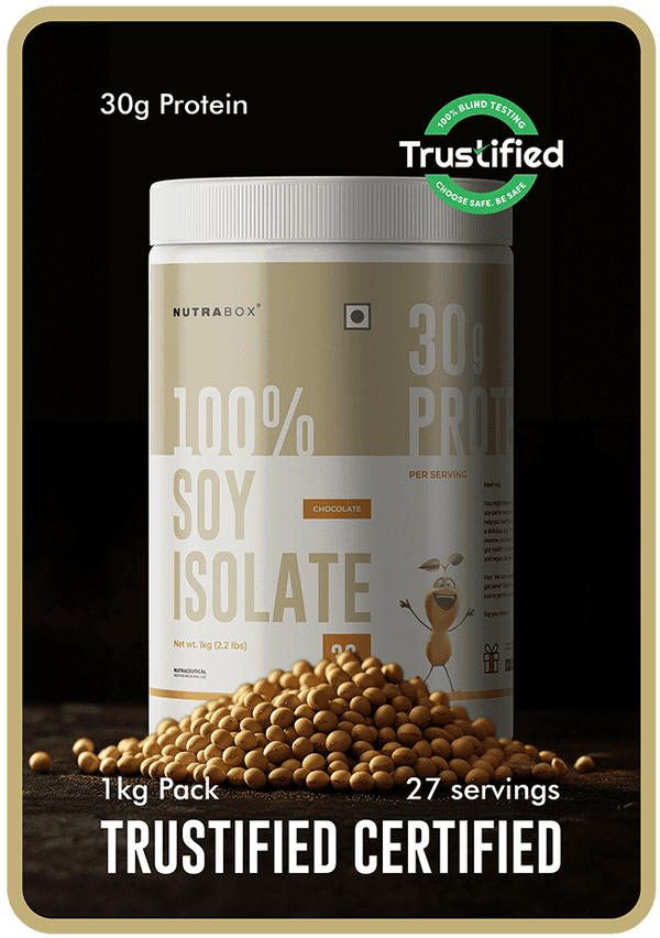 Nutrabox Soy Protein Isolate is India’s only Trustified-certified soy protein isolate, tested for purity, label accuracy, and the absence of heavy metals or contaminants.