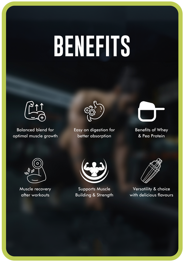 With 22g of protein per serving it encourages muscle growth, recovery and strength development. It is a fast acting protein with top protein sources like Whey Protein Concentrate and Pea Protein Isolate. With 3 flavour options and no added artificial flavour or artificial sweeteners it is versatile and delicious.