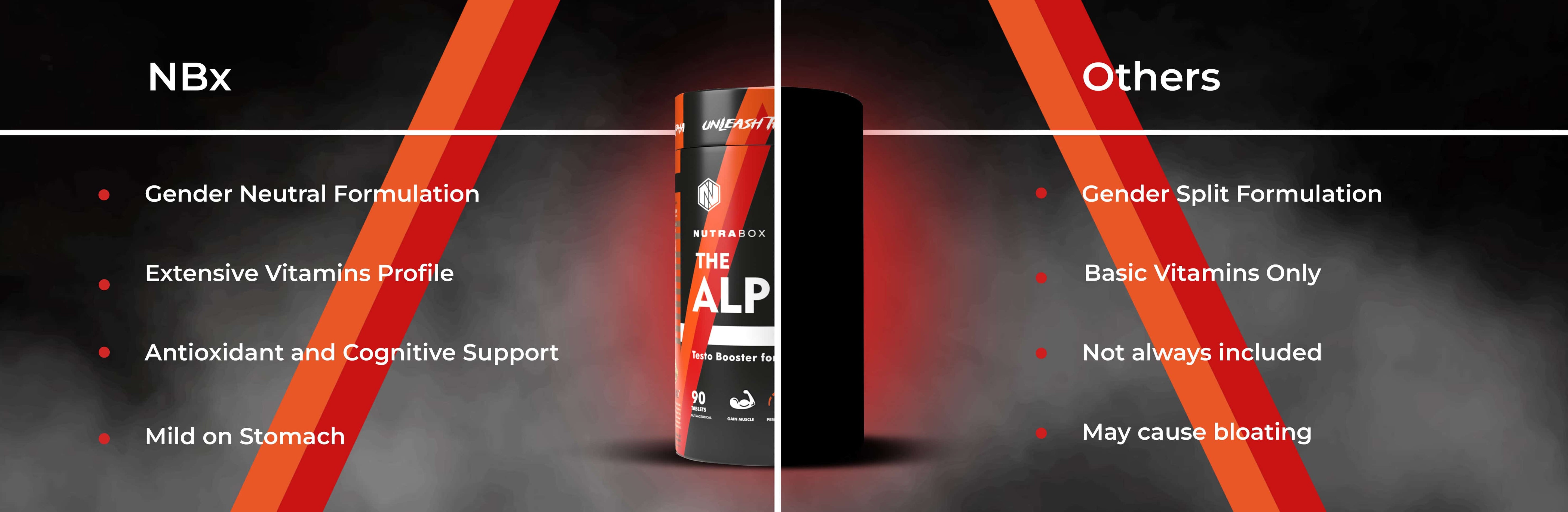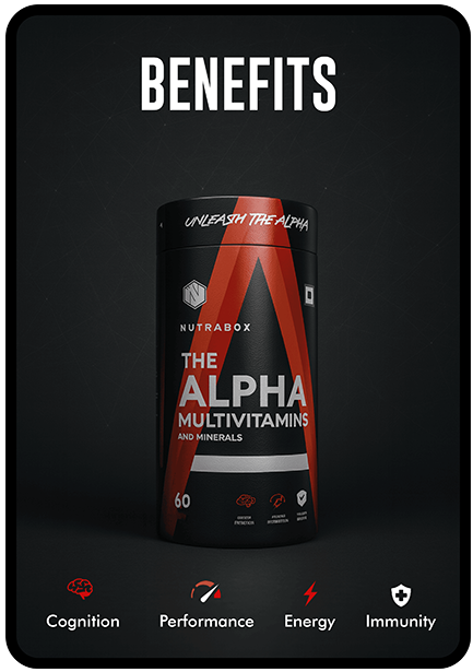 Nutrabox Alpha Multivitamin and Minerals tablets for men & women has a unique blend which takes care of your bodies essential vitamins, minerals, sports performance, brains and eyes, antioxidant and vitality , joint care, weight management & muscle building. Recognized as the best multivitamin for men & women, Nutrabox Alpha is designed to support overall well-being and enhance daily performance.