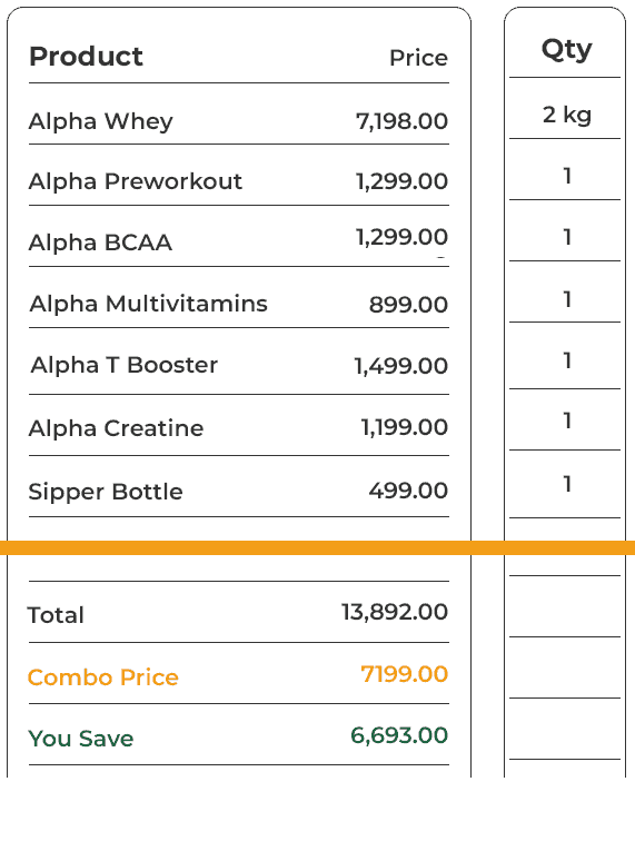 Unleash your peak performance with The Alpha Stack — a powerhouse combo built for serious lifters and transformation seekers. From muscle-building Alpha Whey to strength-boosting Creatine, endurance-driving Preworkout, recovery-supporting BCAA,... Read more