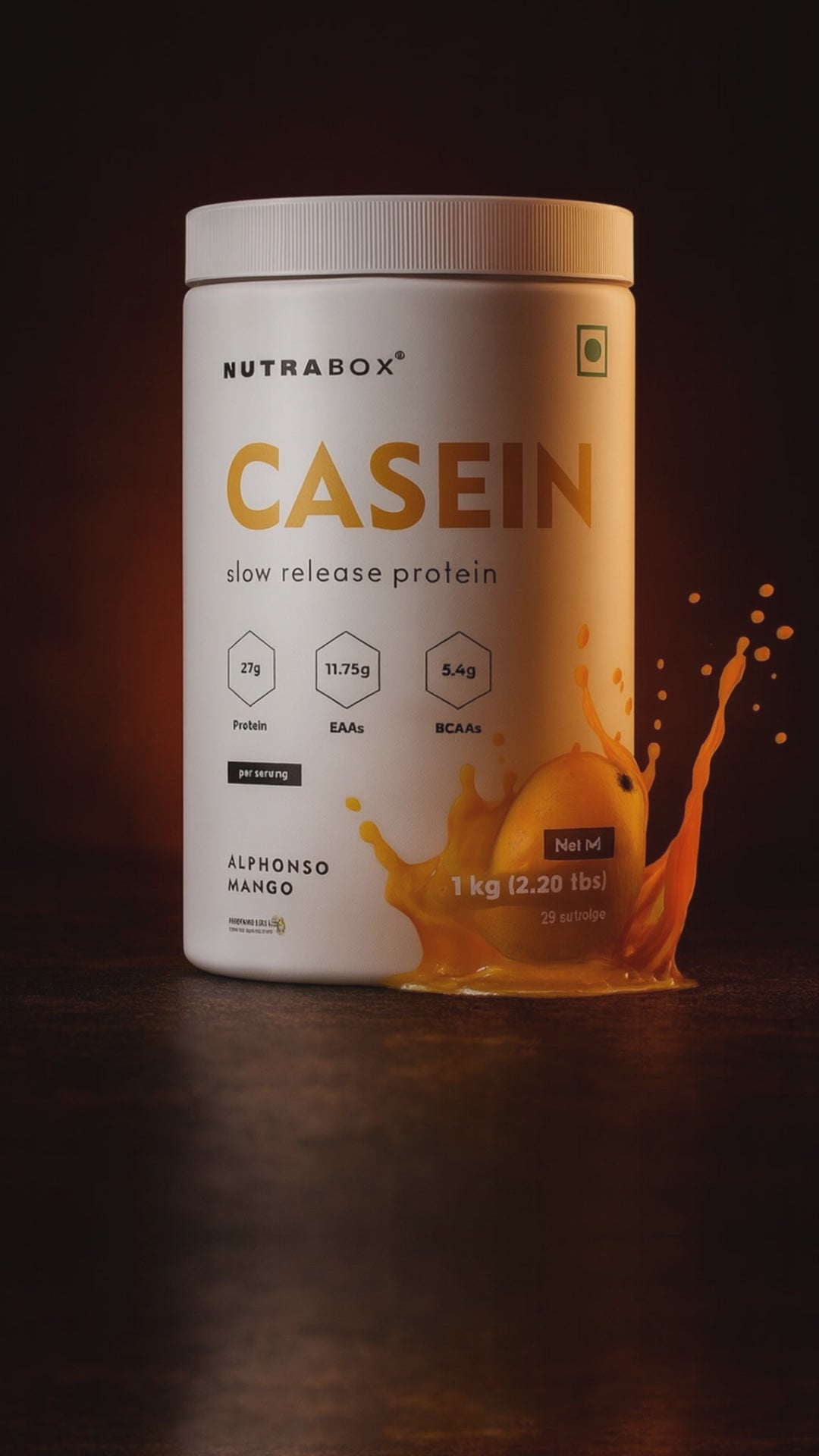 Casein is a slow-digesting protein that provides a sustained release of amino acids for up to 8 hours. It helps reduce muscle breakdown during long gaps between meals or overnight, supports muscle recovery, and improves lean muscle retention — making it ideal as a bedtime protein.