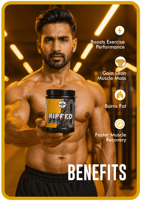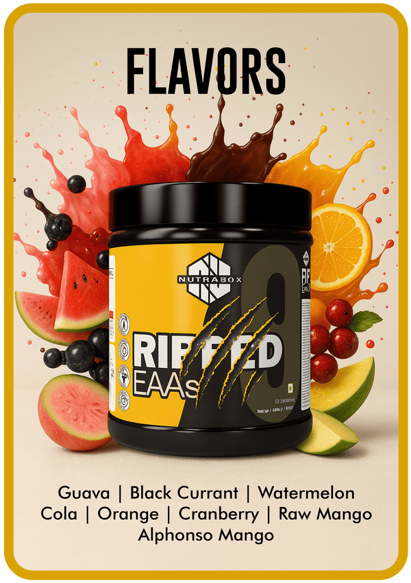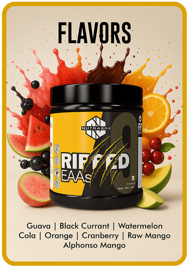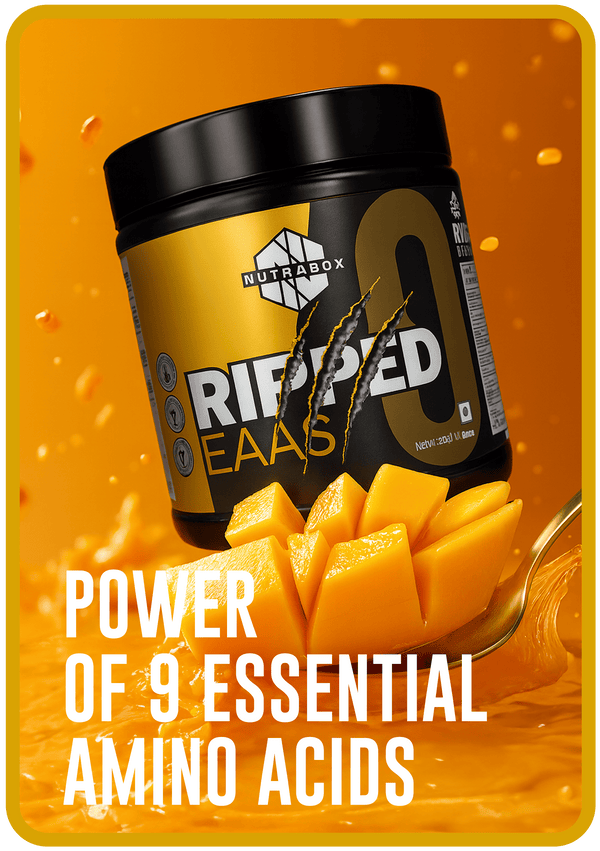 Our body cannot make essential amino acids itself, so they have to be consumed through supplements; therefore, we have formulated Nutrabox Ripped EAA, a convenient EAA supplement that provides all 9 amino acids in one super drink. It helps in reducing catabolic state, assists in building lean muscle mass & improves muscle strength.