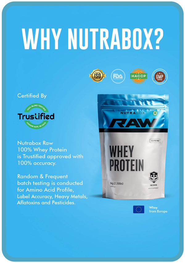 Looking for a pure and versatile protein supplement? Try Nutrabox RAW! Featuring unflavoured whey protein concentrate , Nutrabox RAW is perfect for shakes, smoothies, and recipes. Certified by Trustified, it's the ideal choice for those seeking high-quality, clean protein with multiple health benefits.