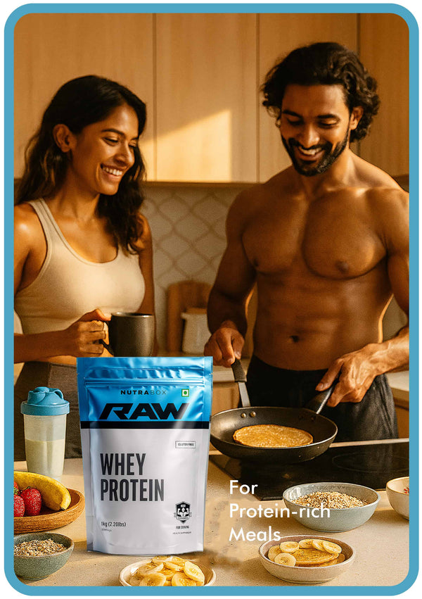 Nutrabox Raw whey protein is extremely versatile and can be used in recipes like smoothies, oats, pancakes, laddoos, donuts, cakes, or consumed as a simple protein shake.