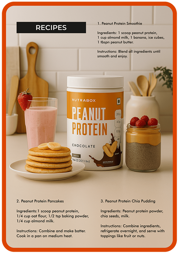Peanuts are naturally rich in protein, healthy fats, and amino acids, making them an excellent choice for anyone looking to build muscle, boost recovery, or maintain a balanced diet. Our peanut protein delivers a potent 25g of protein per serving along with a delicious chocolate flavor, making it an ideal option for those who want clean, effective protein without any additives. Perfect for fitness enthusiasts and health-conscious individuals, Nutrabox Peanut Protein supports your goals with natural, wholesome ingredients.