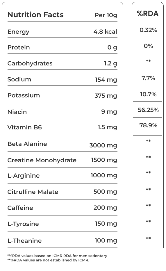 - When you see no issue with the tolerance & you want to boost the energy further, you can take 1 scoops (10gm) before starting the training