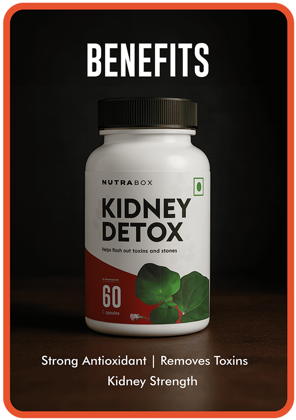 Nutrabox Kidney Detox Capsules are the finest kidney detox capsules extracted & formulated from natural ingredients like Punarnava extract, Varun extract, Patharchatta extract, Gokhru extract, Parsley leaf extract, and Nettle Seed extract which is used to flush out toxins. Nutrabox Kidney detox helps protect kidneys from the development of stones and any disorders related to urinary systems.