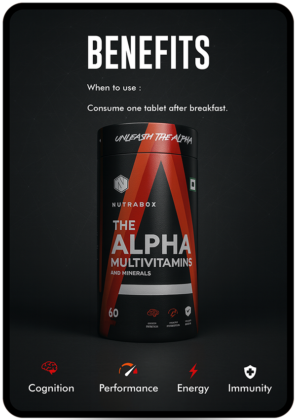 Alpha Multivitamins and Minerals : It boosts immunity and increases energy levels. It improves mood and brain functionality. Daily Multivitamins have multiple roles in the body and are necessary from producing energy to ensuring proper function of bodily systems.