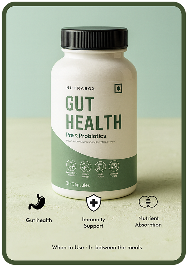 Nutrabox Gut Health : Nutrabox Gut Health Capsules is our cutting-edge Prebiotic & Probiotic Supplement specially designed to support your digestive health like never before! A happy gut is the key to overall vitality, and with Nutrabox Gut Health Pre & Probiotics, you can embark on a journey to improved digestion, strengthened immunity, and enhanced well-being.