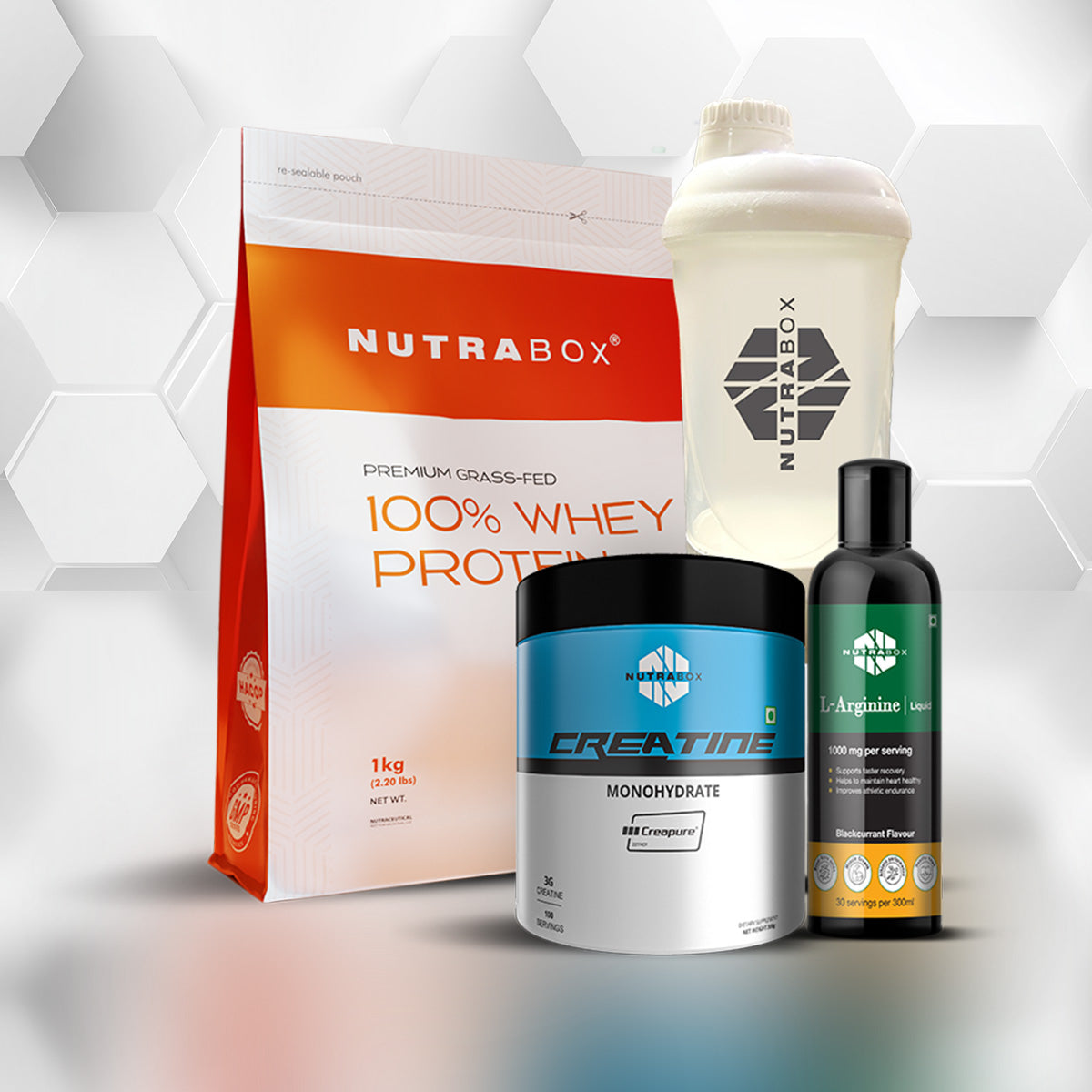 The Nutrabox Nitro Boost Combo offers Nutrabox Whey Protein, Creatine Monohydrate (Creapure), L-Arginine Liquid Shot and a free Shaker. This high performance stack will help boost nitric oxide ,gain muscle mass & increase stamina/strength.