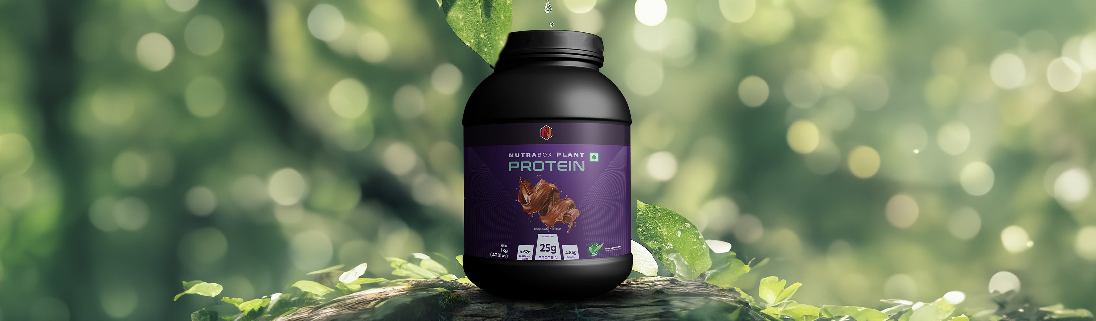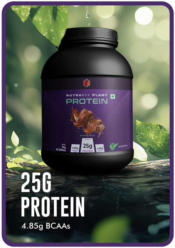 Nutrabox Plant Protein is 100% Vegan and organic protein for full filling daily protein requirement naturally. It is a plant-based protein powder that fulfills your body's protein needs as it gives 25 grams of pure plant-based protein per serving. It gives you 4.4g of glutamine and 4.7g of BCAAs per serving.