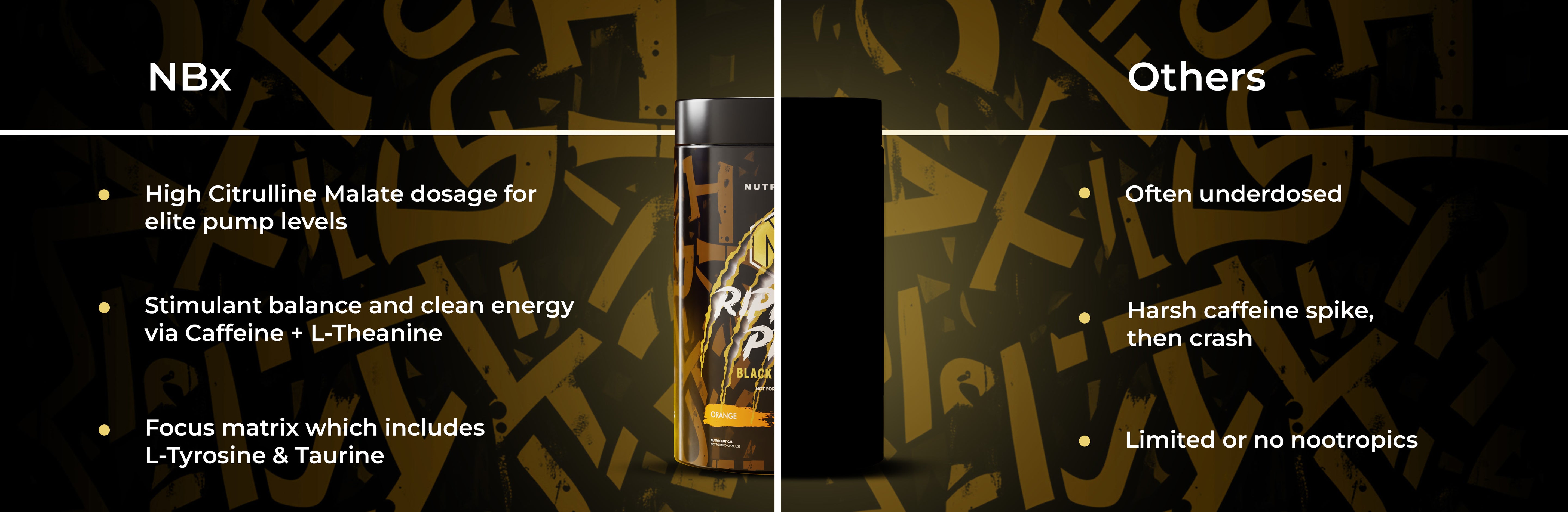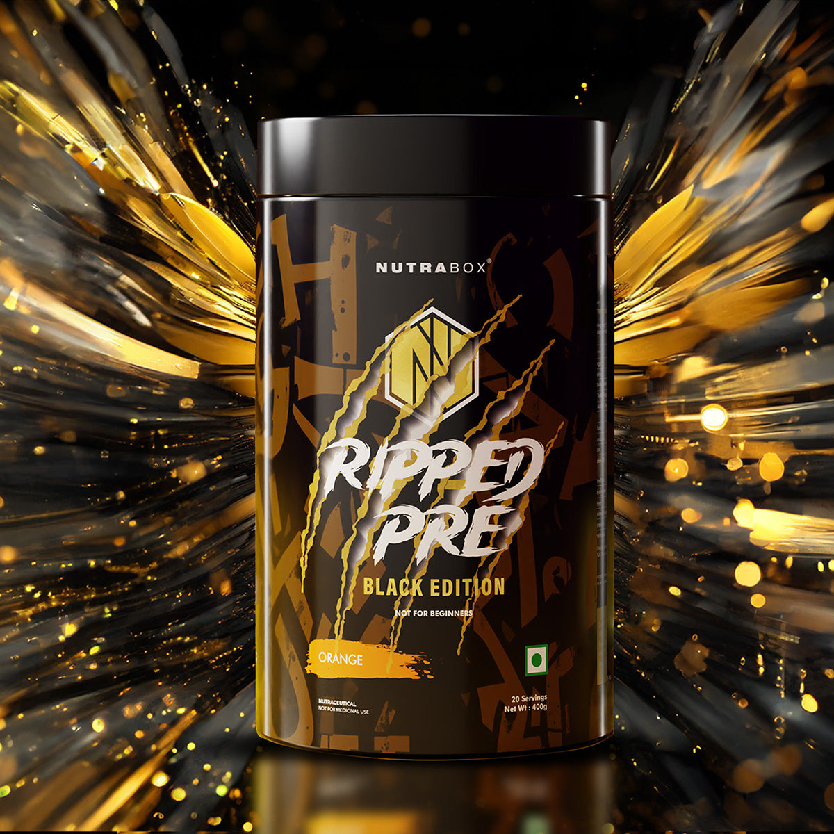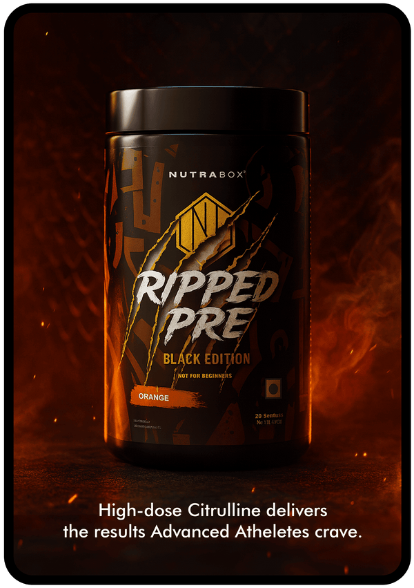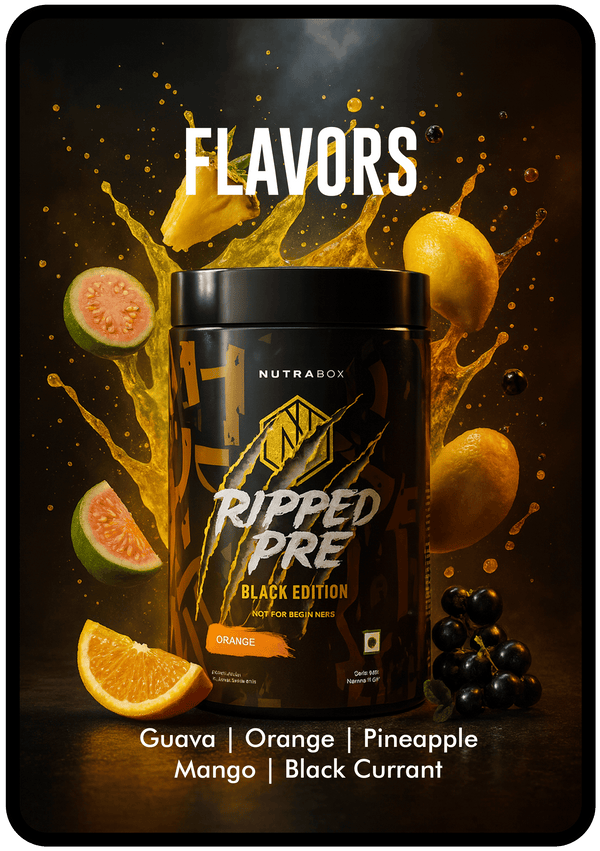 Pre Workout : Nutrabox Ripped Pre-Workout Black: Nutrabox Ripped Pre-Workout Black edition has Ripped energy fusion which includes blend of Citrulline Malate, Beta-Alanine, Taurine, L-Tyrosine, Caffeine and L-theanine.