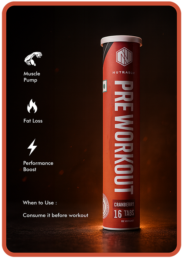 Nutrabox Pre-Workout Effervescent tabs: Nutrabox Pre-Workout Effervescent tabs are India's 1st Pre-Workout supplement in the effervescent form. It is a Pre-Workout effervescent tablets that boosts workout performance. It is a formula to do more.