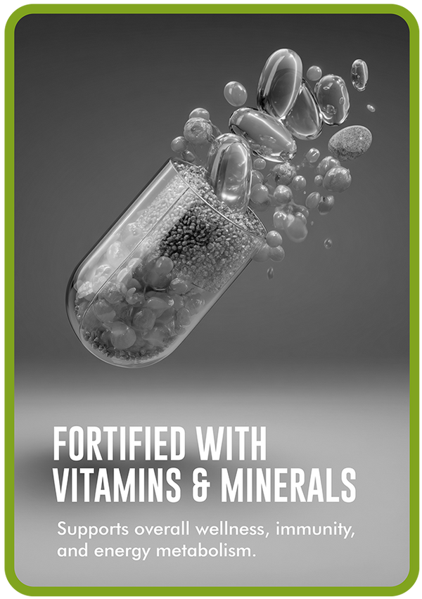 It contains 36g of Protein per 100g and 15.5g of Essential Amino Acids that help you regulate a smooth protein building process. The amino-acid and digestive enzyme rich profile help accelerate the body building process. The added vitamins and minerals help the body fulfill its nutritional needs.
