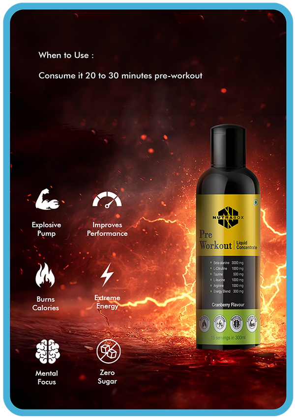 - Liquid Pre-Workout: 1.5 to 3 tbsp with 200 ml water
