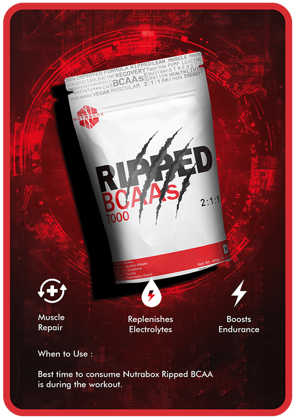 During workout Nutrabox Ripped BCAA helps reduce the wear and tear of your muscles; hence enabling you to extend your regime and go that extra mile, every time.
