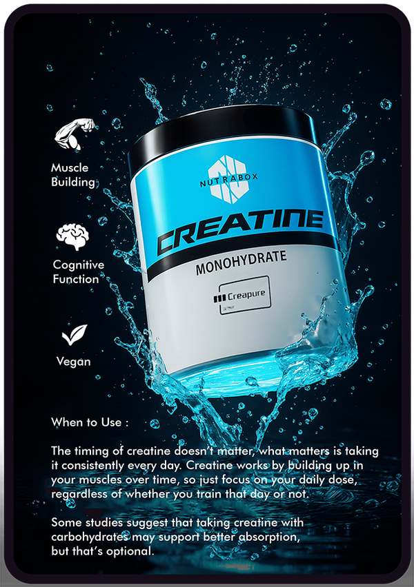 Nutrabox has developed the purest form of 100% creatine monohydrate which is also Vegan. Each serving of Nutrabox Creatine Monohydrate provides 3g of creatine for building strength and increasing endurance.The muscular boost provided by Nutrabox Creatine Monohydrate helps achieve bursts of speed and energy.